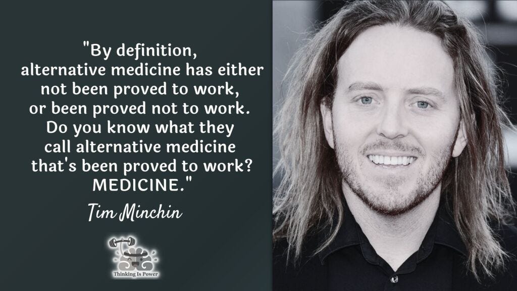 Есть такое определение альтернативной медицины, которое я не устаю повторять. Его придумал австралийский музыкант Тим Минчин. Альтернативная медицина – это медицина, про которую либо не доказано, что она работает, либо доказано, что она не работает. Знаете, как называется доказанно работающая альтернативная медицина? Медицина.